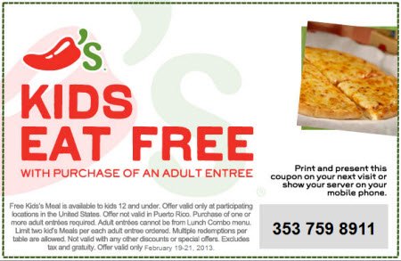 You can find printable Chilis coupons right on the Internet. Simply type Chilis coupons into your favorite search engine and you will be amazed at how many coupon websites you can choose from. Browse them and bookmark the good ones. Naturally you will want to print all the Chilis vouchers you run into. After all, who wants to cook dinner on Friday night after working all week? Plus, the kids always love to eat out too.
